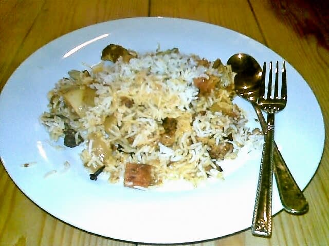 ビリヤニ 弁当日記 X Facebook Hatena Bookmark Pocket LINE Copy 2012.11.25 11月25日 夕方、ビリヤニ専門店に行ってみた。 すご~く珍しい業種。 インド料理店で出す、カレーのチャーハンではなく、炊き込みご飯のビリヤニをだします。 シェアレストランという曜日ごとにお店の変わる場所で、日、月のみの営業だそうで、 今日はリーダーが海外修行から帰国したイベントということで行った見た。 いや、うまかった。 ハイデラバード風というバングラデシュのものよりも脂少な目で食べやすい。 今度皆でこよう。