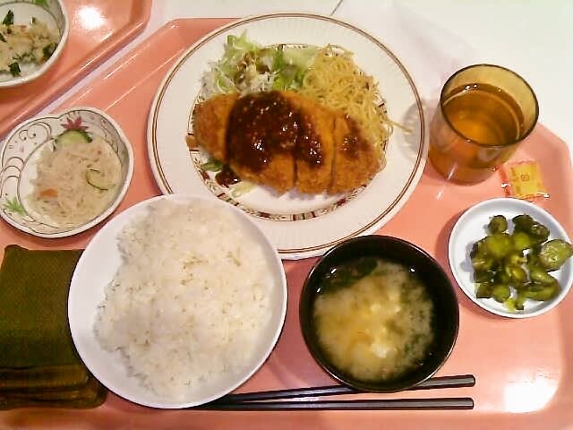 お昼はチキンカツ定食